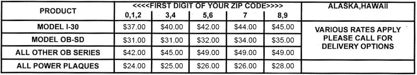 below are for FedEx ground delivery to the